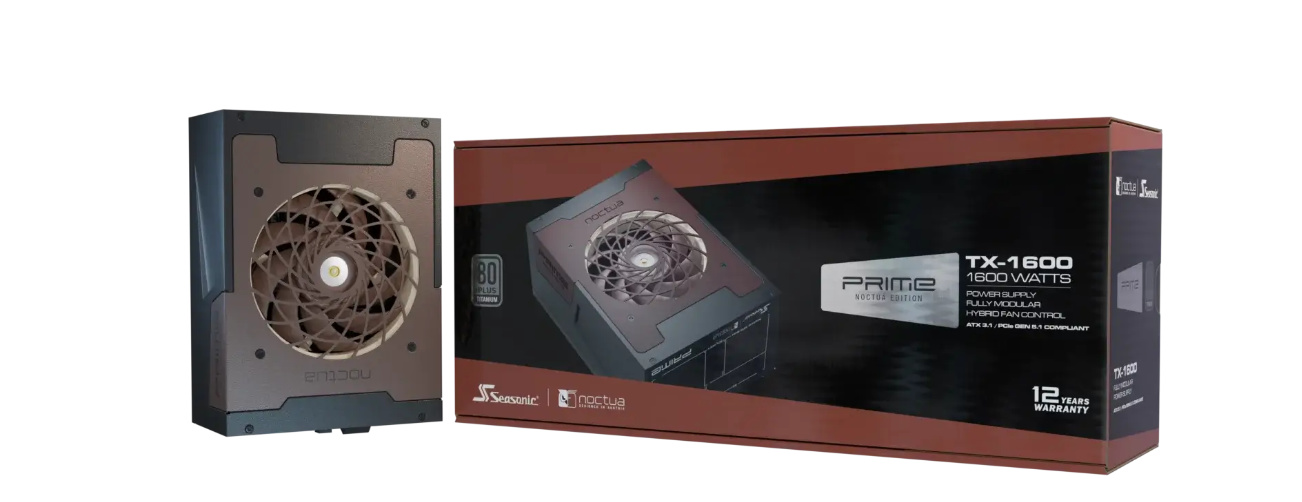 电源是——海韵 PRIME TX-1600 Noctua,一线大厂海韵的旗舰型号,钛金效率,话说这个一年应该能省不少电费哈哈...12年原厂质保,ATX3.1+PCIe5.1,全日系105°电容 半载运行加上Noctua NF-A12x25风扇,主打一个丝滑静音