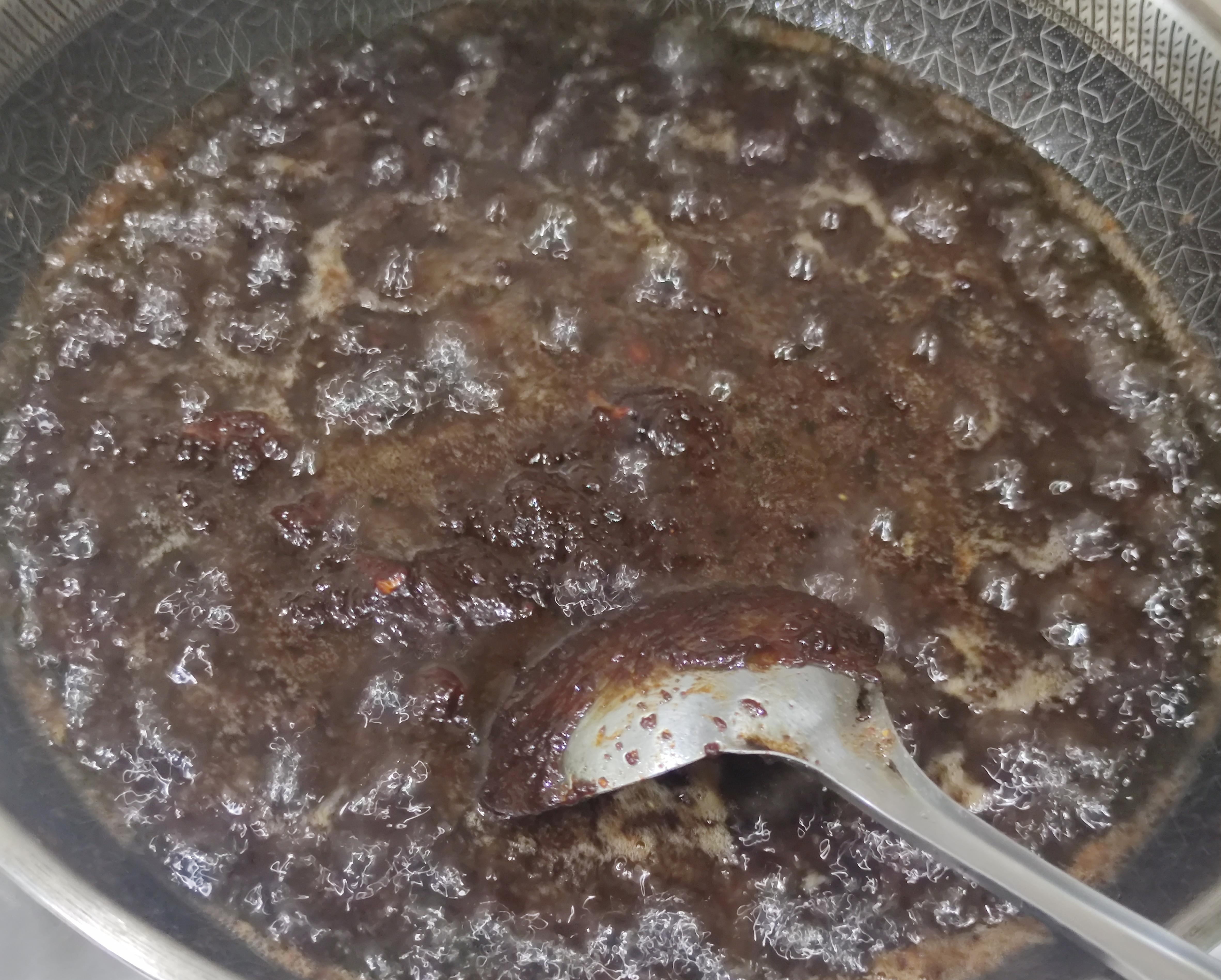 下入酱,转小火慢炒,期间不停的搅动,防止糊底。