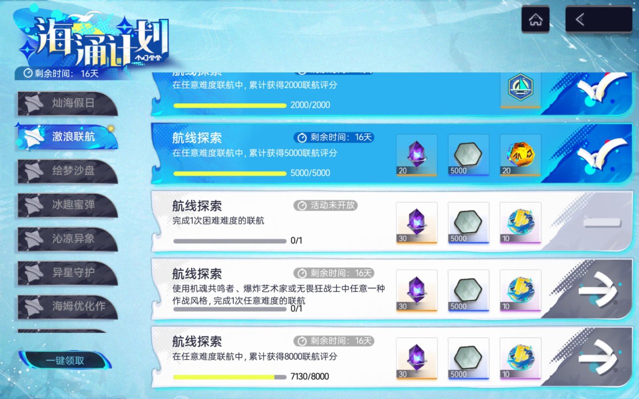 這裏提醒各位,週一先打完勇者遊戲,領數據金,比去激浪聯航性價比高,因爲激浪困難可掛機抱大腿爆炸藝術家過
