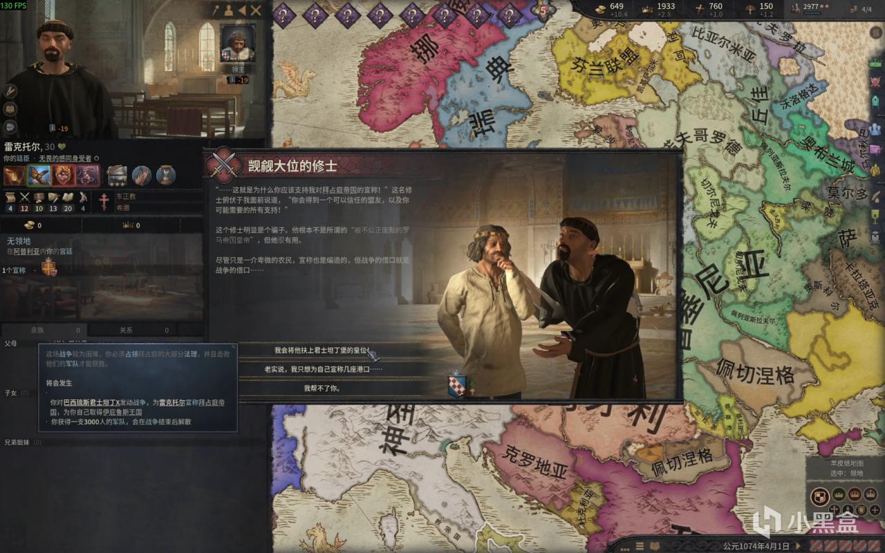 開局我們的人物孩子非常多,多找幾個盟友,加上事件士兵,拿下拜占庭沒問題。