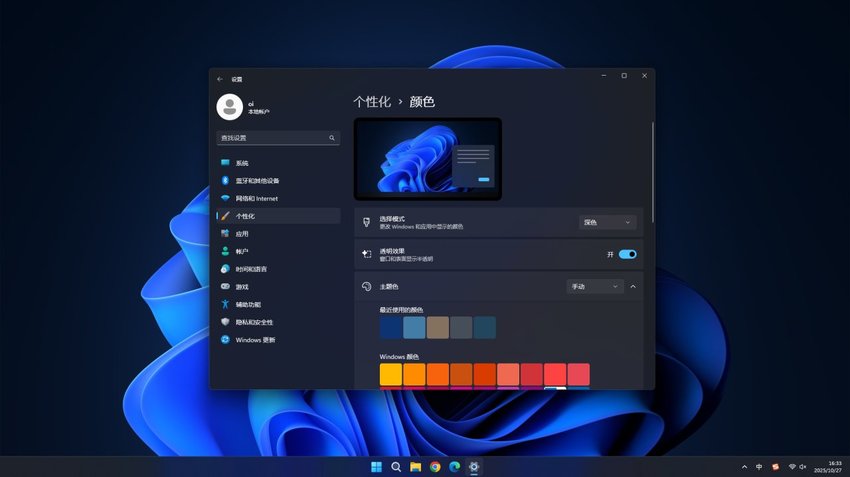 深色模式下仍存在的大量黑色與淺色窗口混雜,屬實一言難盡。
