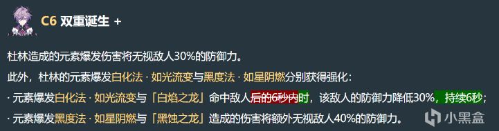 命之座六:元素爆发白化法·如光流变与「白焰之龙」命中敌人后的6秒内,该敌人的防御力降低30%→元素爆发白化法·如光流变与「白焰之龙」命中敌人时,该敌人的防御力降低30%,持续6秒