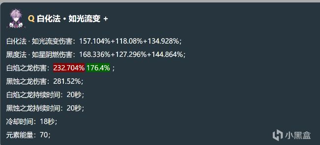 元素爆发:白焰之龙伤害:232.704%→176.4%;