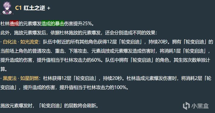 命之座一:元素爆发伤害提升25%→元素爆发伤害中的暴击伤害提升25%