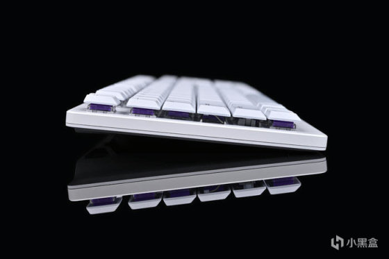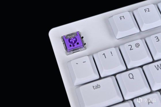 取下键帽,可以看到噬魂金蝎 V2 Pro 专业版使用的雷蛇自家段落光学矮轴,紫色外观,具备 RGB 灯效,参数方面总行程 2.8mm,触发行程 1.5mm,触发力度 50g,在轴体内部内置硅阻尼器,手感舒适轻盈,触底扎实,触发响应灵敏迅速,非常适合游戏场景使用且有一定的静音效果。