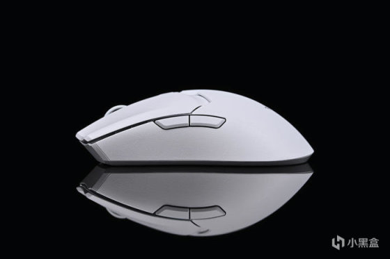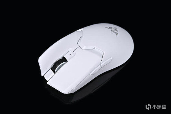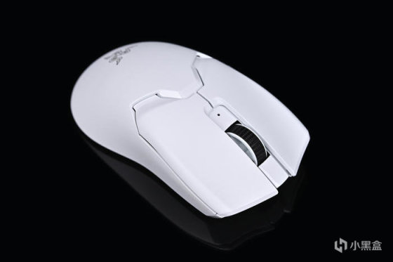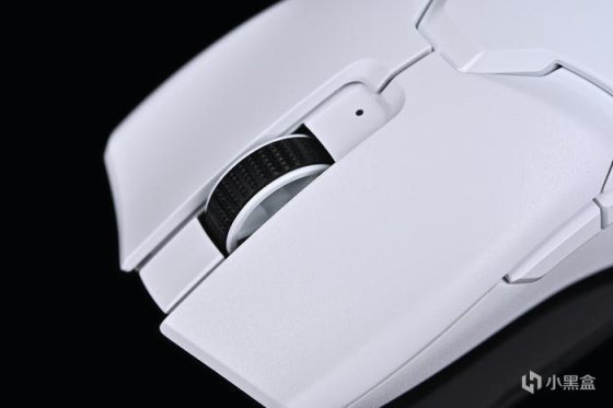 鼠标前方两个按键按压手感清脆,内置 Razer Optical Mouse Switches Gen3 微动,拥有 9000 万次的使用寿命。鼠标滚轮刻度感明确,按压触感利落,同时露出面积更多,手指轮动更舒服。滚轮后方还有一个指示灯,用于提示连接状态 DPI 切换、开关机以及剩余电量提醒。