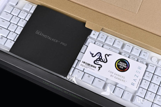 取出键盘本体,雷蛇 Deathstalker 噬魂金蝎 V2 Pro 正面展示。