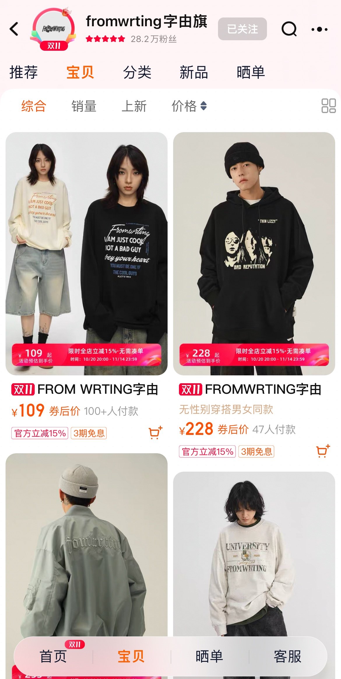 在这家买过几回卫衣,卫衣很耐穿,很百搭,图案小有设计,价格一般在200上下这个区段