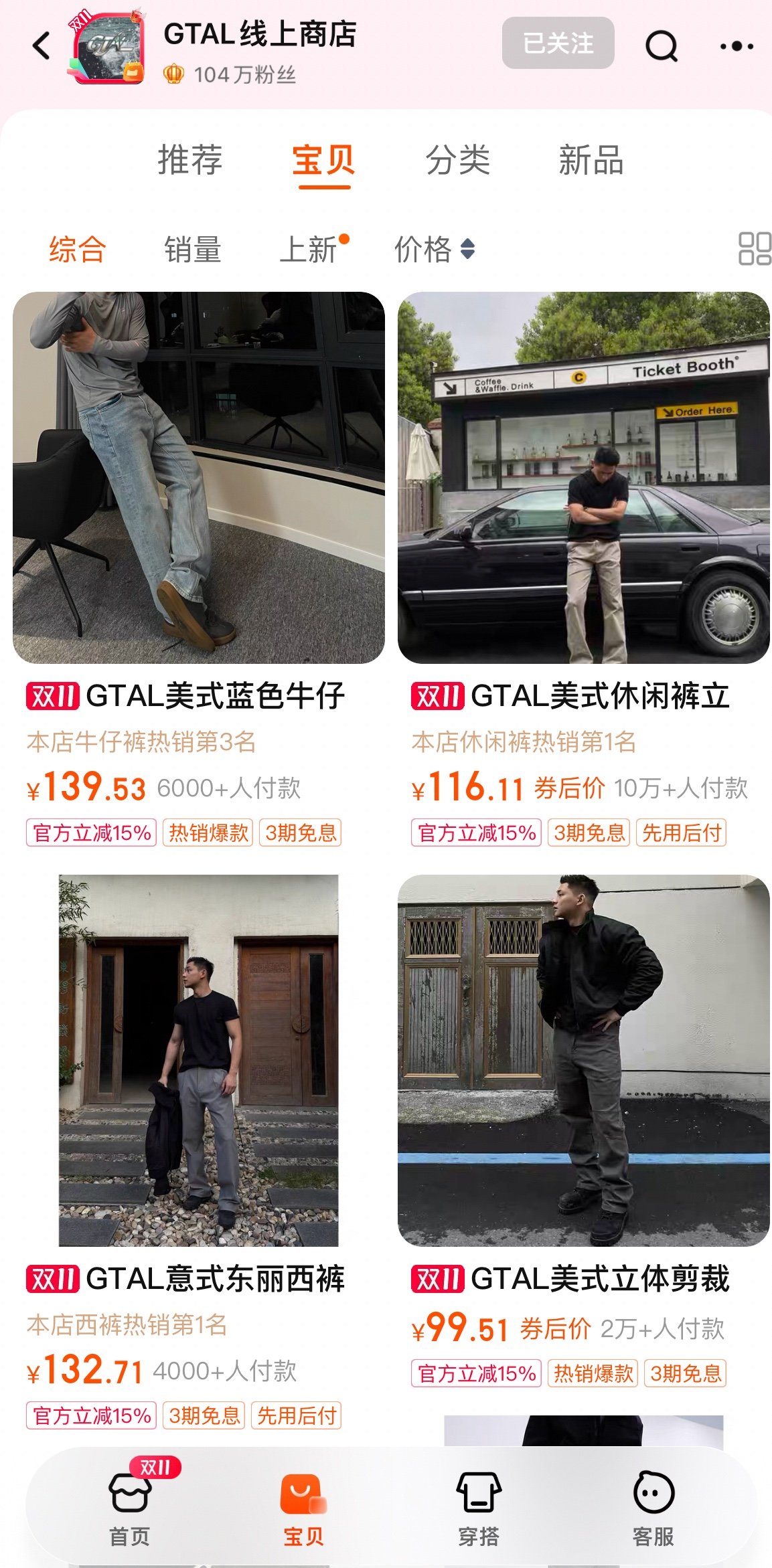 这家的裤子挺不错的,在他们家买过两三回了,款式都很百搭,用料还挺扎实耐穿,均价在小1百左右