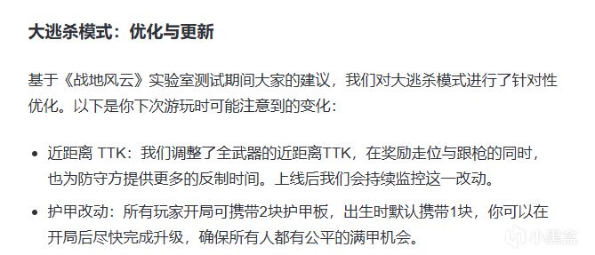 PC玩家都需要手动下载“禁区冲突”,主体的更新不包括大逃杀模式,大家什么时候能玩上就得看大家的网速了,不过也稍安勿躁,PC下好了估计主机都能开上两把,也做好排队的准备,不过在PC端的好处就是不用担心不玩大逃杀这模式还要白白占用你的电脑内存了,更新本体的时候也不用担心强制捆绑模式搞得内存非常紧张,还得特意空点出来给一个根本不玩的模式,人性化!