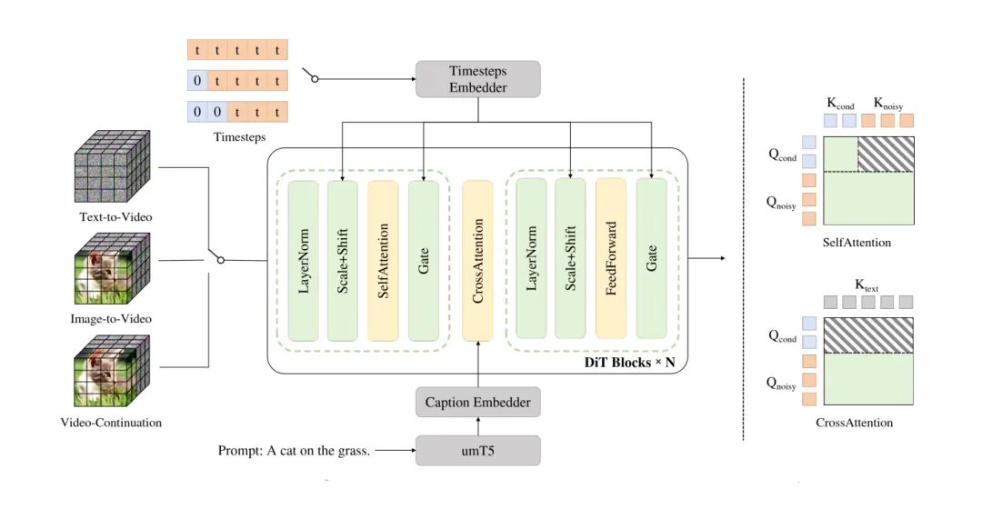 同一个模型,既能文生视频(Text-to-Video),又能图生视频(Image-to-Video),还能视频续写(Video Continuation)。