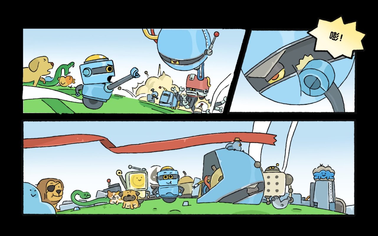 画手采用粗线条平涂风格,动物个个圆滚滚。虽然线条和色块都很简单,但每个动物的神态和动态都抓得很准。寥寥几笔把各类动物的灵气和可爱展现得淋漓尽致。
