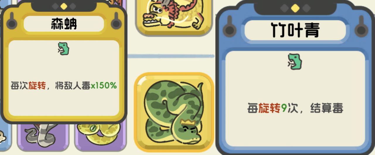 本流派前期过渡拿上竹叶青凑四蛇八蛇是可以的,但是后期千万不要上它...血的教训,因为偷懒没看技能描述,拿了好久才发现叠毒叠不上来。