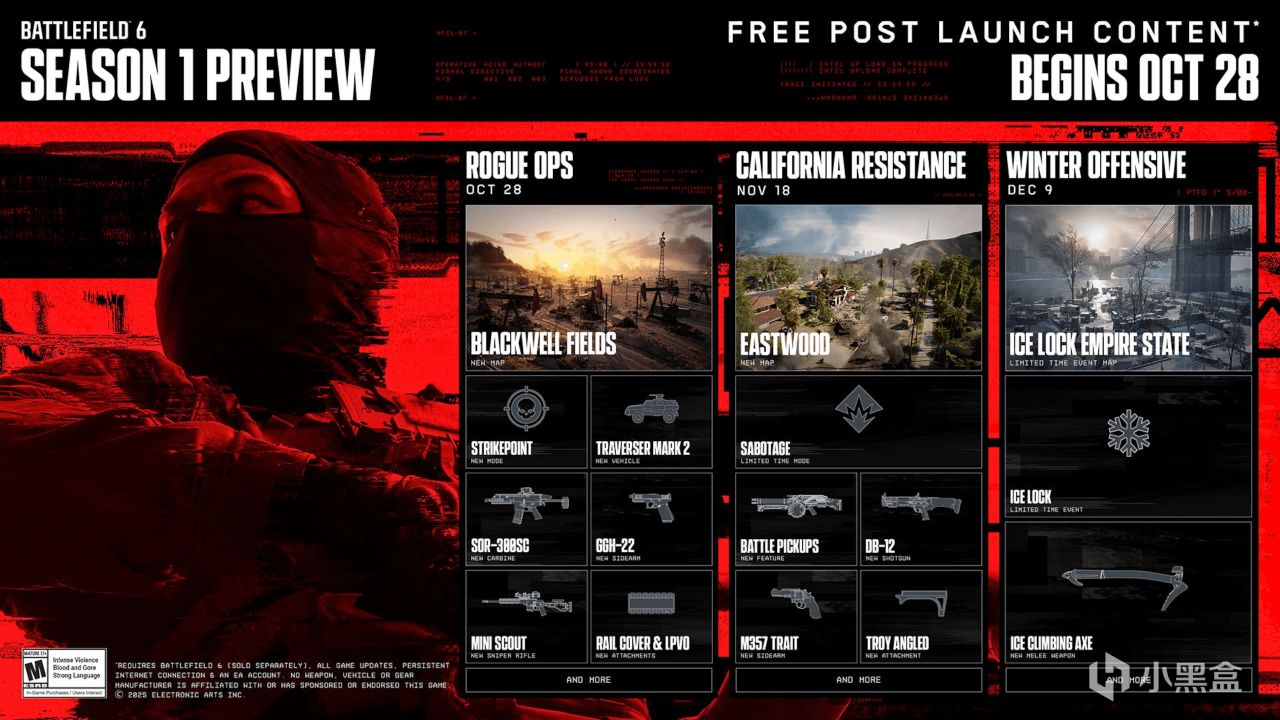 现有爆料来看,《战地6》第一赛季将于10月28日正式启动,持续至12月9日,分为三个阶段逐步推出新内容。