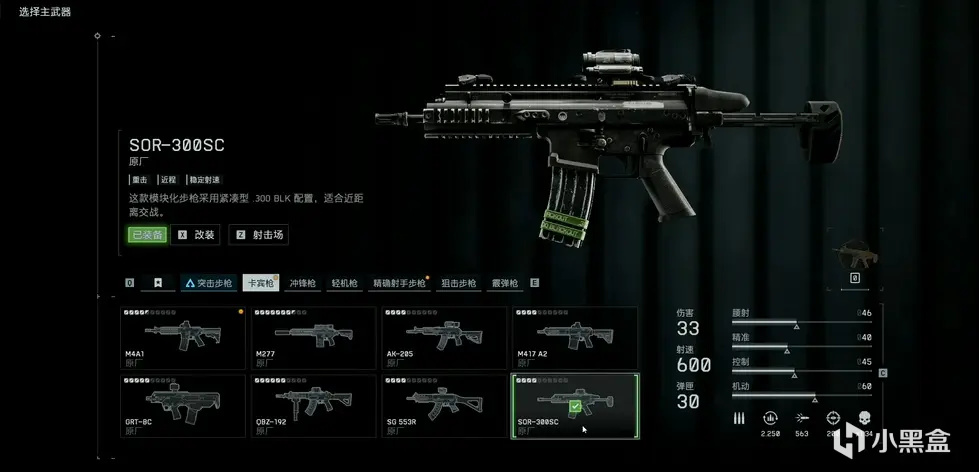 与该平台的 5.56 版本相比,这款射速较低、超小型卡宾枪使用伤害力更高的 .300 Blackout 弹药。
