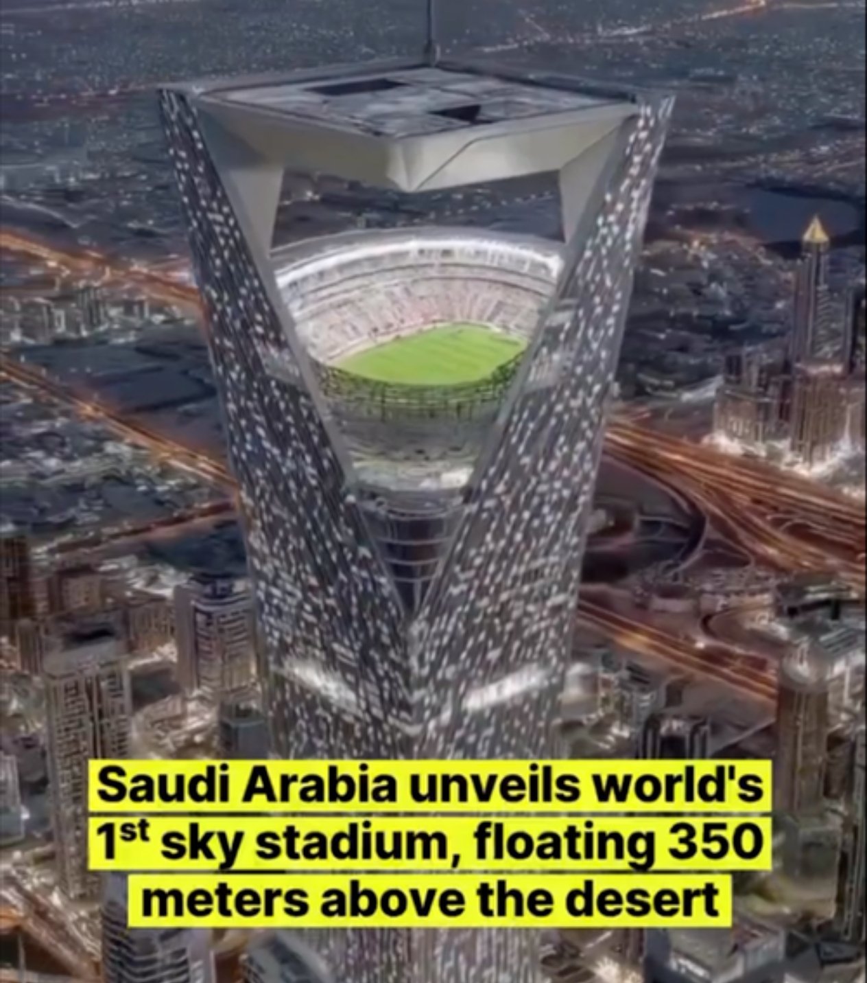 沙特阿拉伯正式宣布建造全球首座“空中球场”——NEOM体育场。该体育场将悬挂在距地面约350米的高空,设计座位约4.6万个,预计于2032年完工并投入测试,以迎接2034年由沙特单独承办的FIFA世界杯。