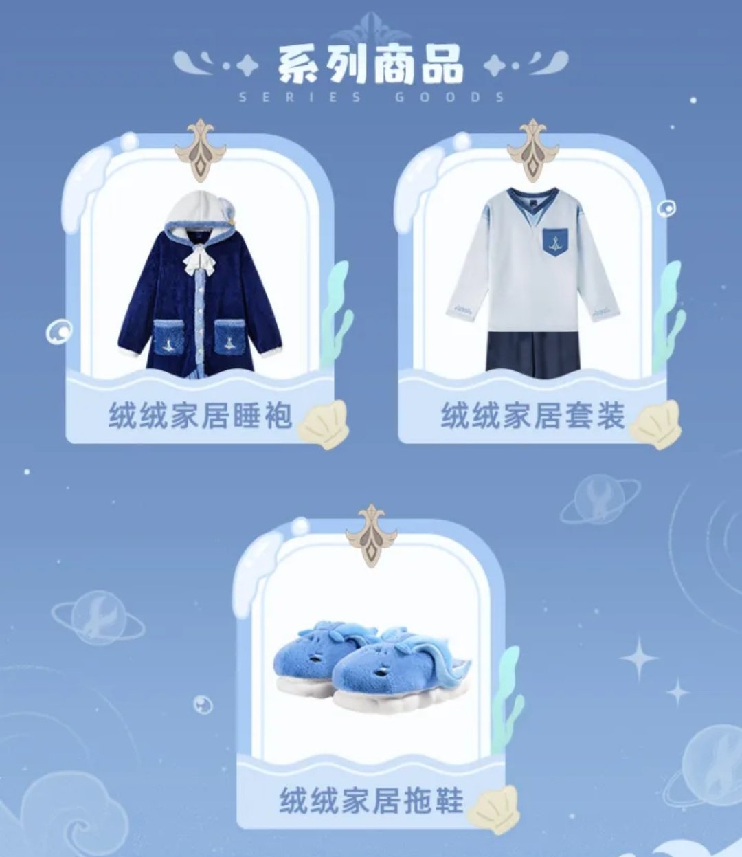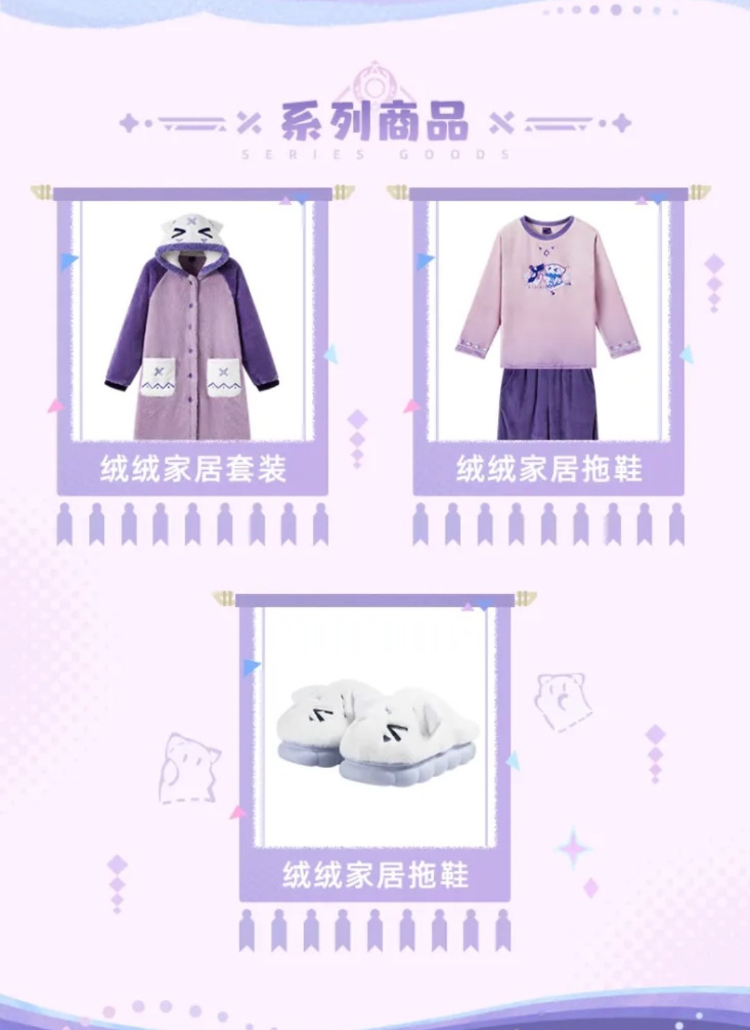 该系列包含绒绒家居套装、绒绒家居拖鞋、家居睡袍(含眼罩) 三类商品。