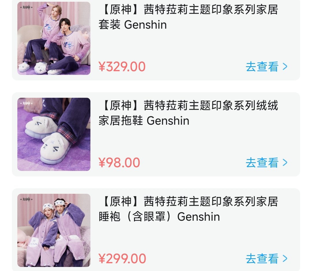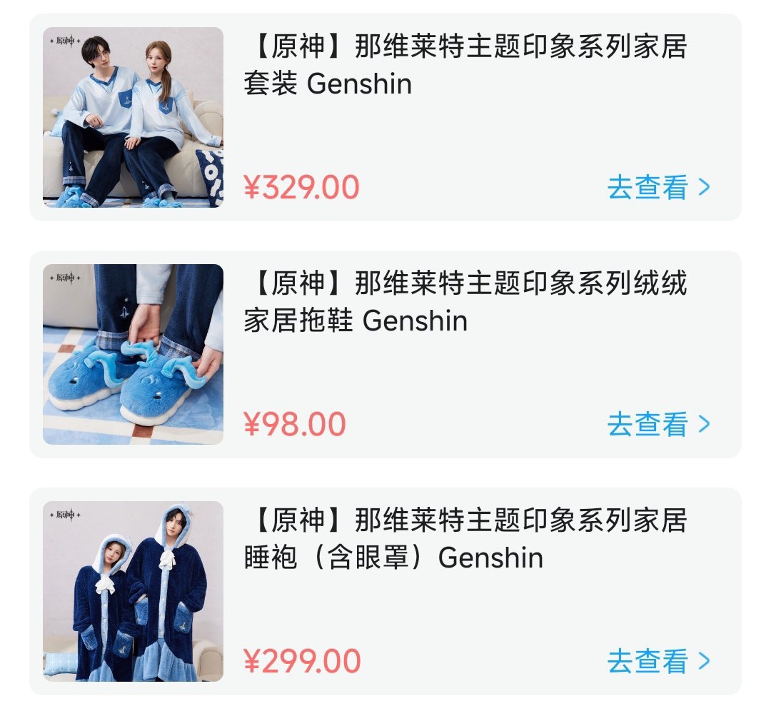 价格方面,家居套装与睡袍(含眼罩)售价分别为329元、299元,拖鞋定价98元。