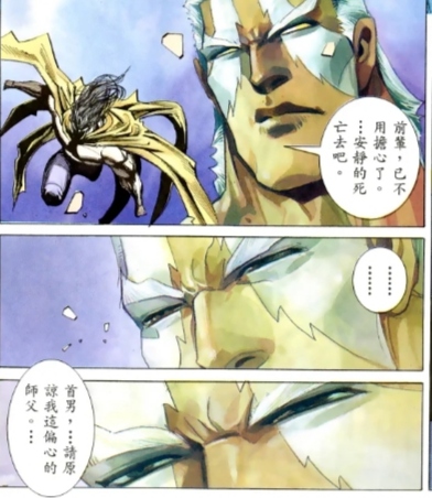 临死之前,天道请求黑暗将自己的心脏送与首男,让首男能够恢复力量,但黑暗就是一个TM小气的家伙,没有在乎天道遗言,黑暗同样将天道心脏震碎,天道也只好带着对首男的愧疚离世。