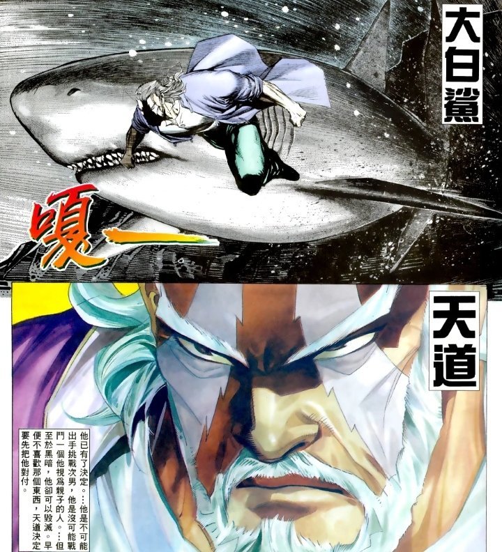 黑暗“重生”,天道也不做保留,谷出全部力量,在一声怒吼下,天道的脊骨就好似大白鲨的鱼鳍一般一节节地鼓起,此刻的大白鲨天道就是如此地凶、恶、劲、霸、狂!