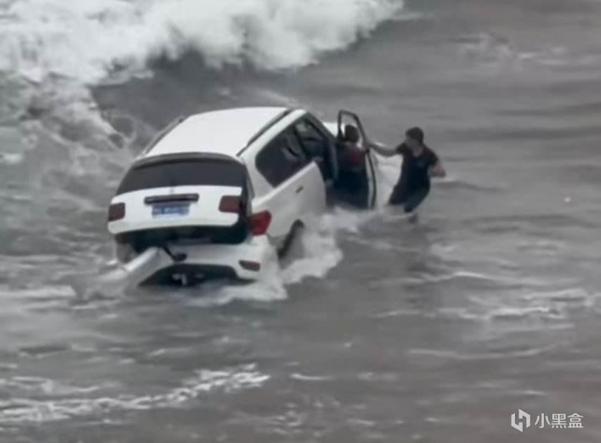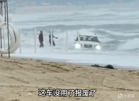 据现场做娱乐项目的经营者回忆,这车当时速度很快,一路在沙滩上疾驰,没多久就陷进沙子里。涨潮的海水很快涌上来,车身被浪打得不停晃,后保险杠都冲毁了。司机赶紧推开车门跑出来,副驾乘客翻窗逃生,后座女乘客还是路人帮忙拉出来的,万幸没人受伤。