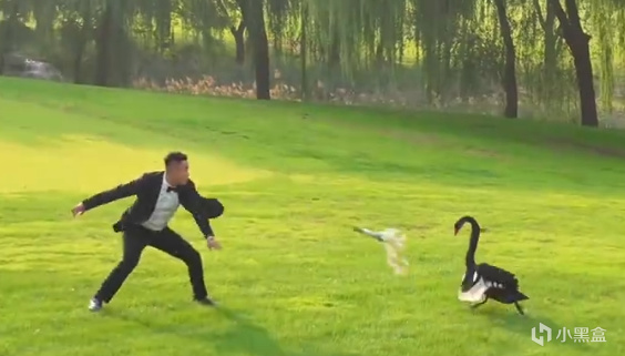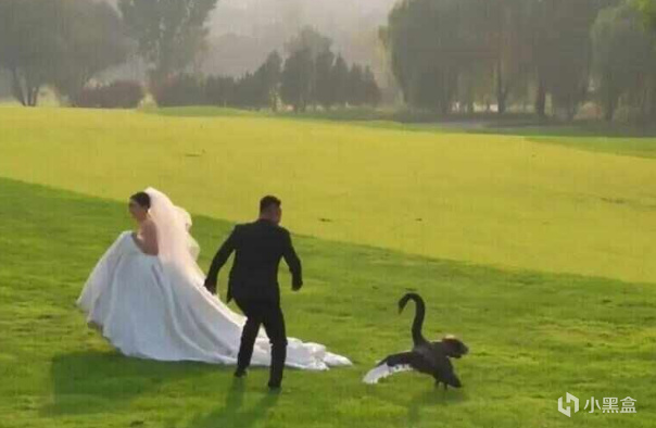 近日,山东济南一对新人拍婚纱照时发生的趣事在网上走红。10 月 26 日下午 3 点左右,孙先生和未婚妻换好服装,和摄影师、化妆师一起在济南长清区一处草坪准备拍摄婚纱照。没成想,附近一只黑天鹅突然扑腾着翅膀朝新娘飞奔过来。