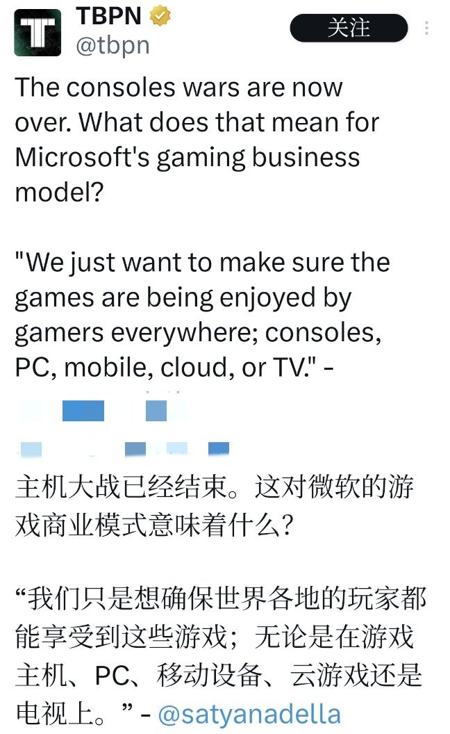 在采访中,Nadella直言不讳地阐述了微软的游戏战略: