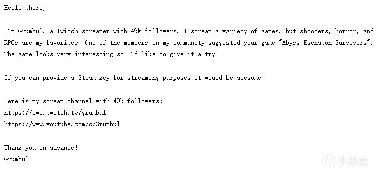 还有一些博主的twitch主页放的邮件联系方式和我收到的邮件地址不一样。