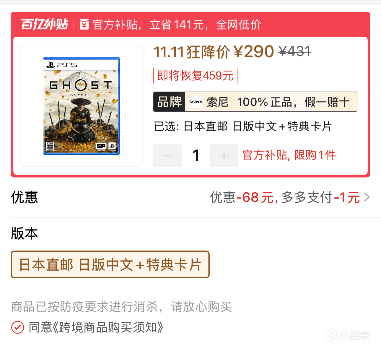 2.PS5游戏《羊蹄山之魂》日版中文+特典卡片290元全新包邮