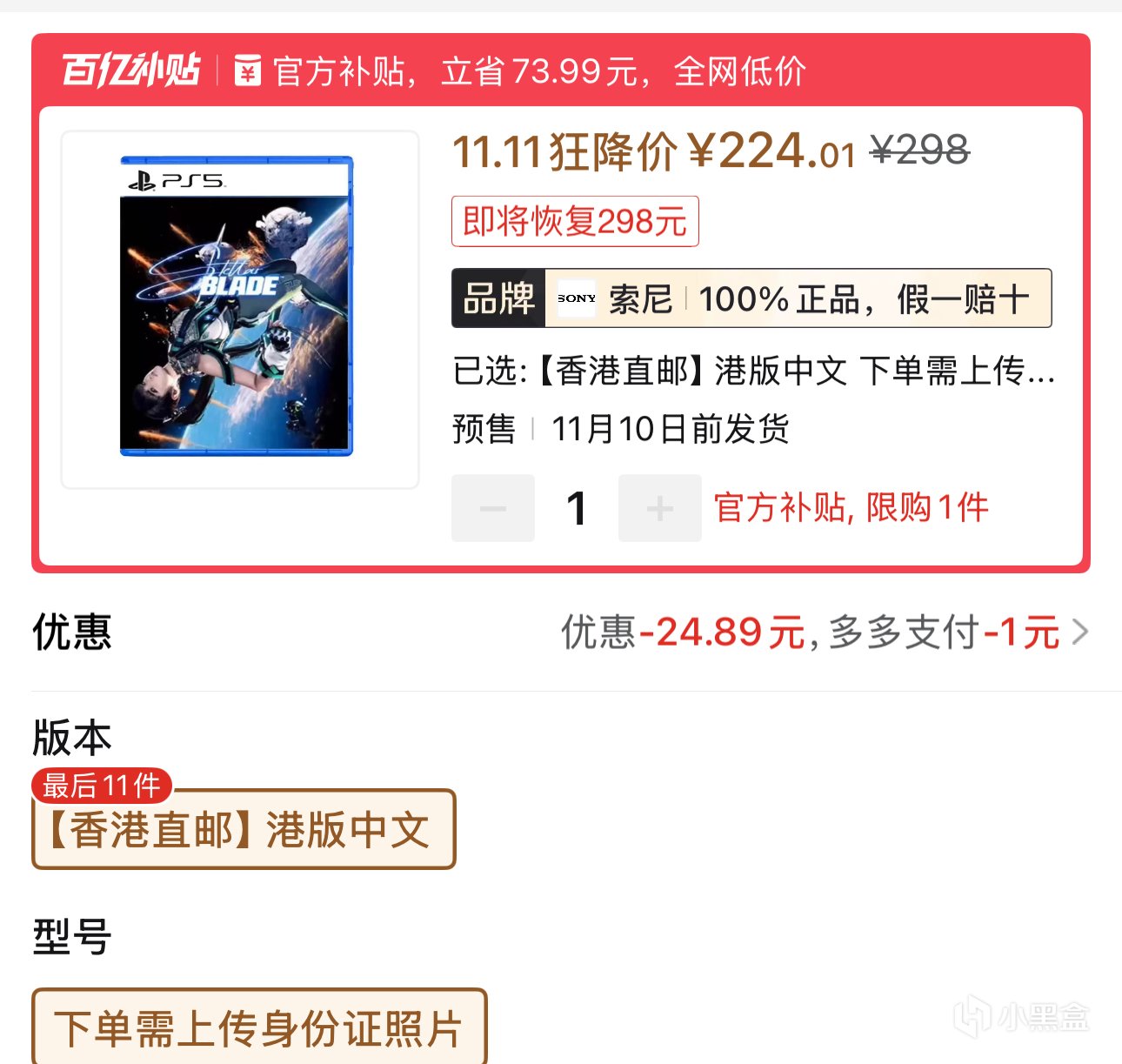3.PS5游戏《剑星》港版中文224.01元全新包邮