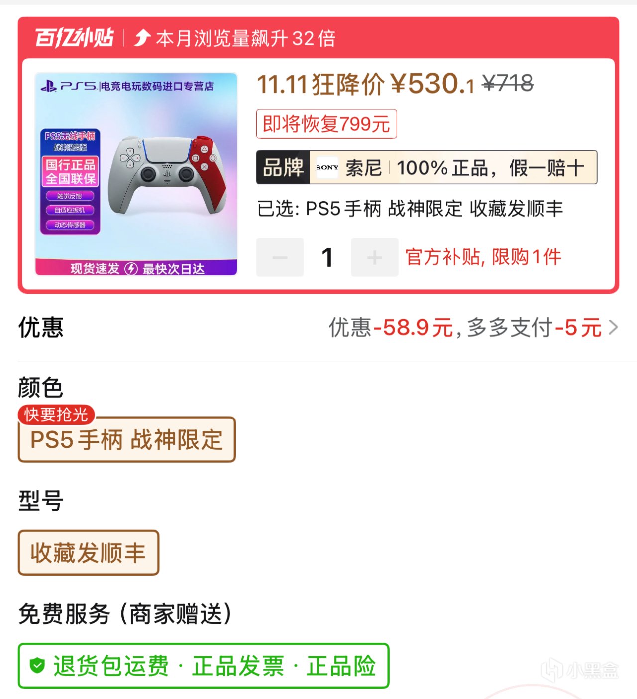4.PS5手柄《战神20周年限定》530.1元顺丰包邮