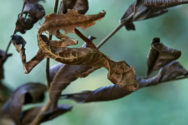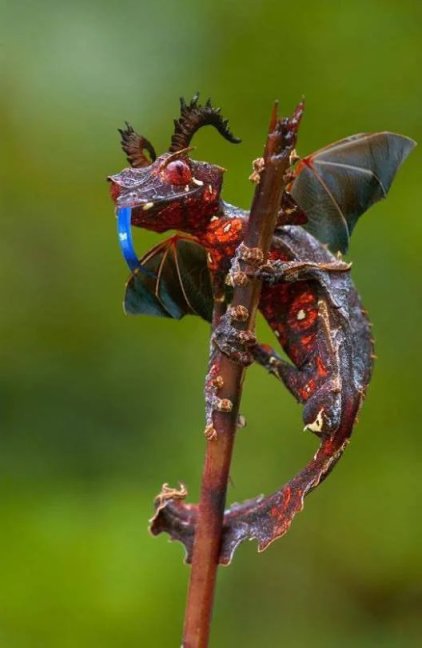 它们善于模仿成树叶,可以将自己完美地融入周围环境中,同时还可以变成黄色、绿色、橙色以及粉红色等颜色。被人们誉为名副其实的伪装大师。