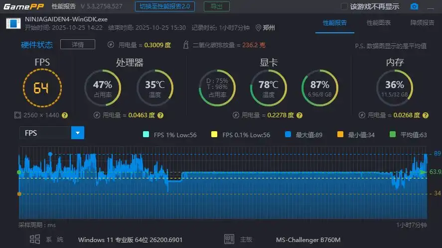 在技术层面,《忍龙 4》的优化还是比较不错的。我使用的显卡是 RTX 2070 8G,在中等画质下,游戏的画面非常丝滑流畅,平均帧数大于 60 帧,没有明显的卡顿和掉帧现象。这种流畅的画面表现为快节奏地战斗提供了坚实的基础,让每一次的连招组合都能够精准执行。