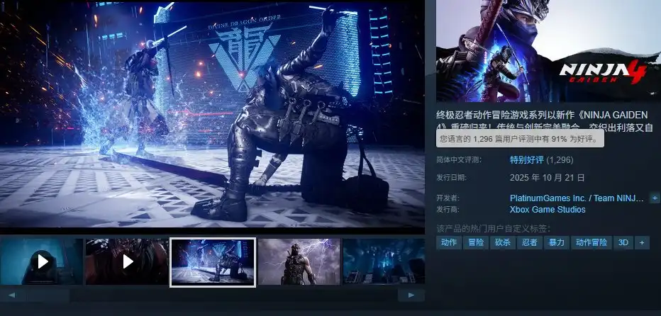 目前游戏在 Steam 上的评价为“特别好评”,好评率 91%。但是该作在 Steam 上的最高玩家峰值仅有 1.1 万人,大家觉得《忍龙 4》遇冷的原因是什么呢?