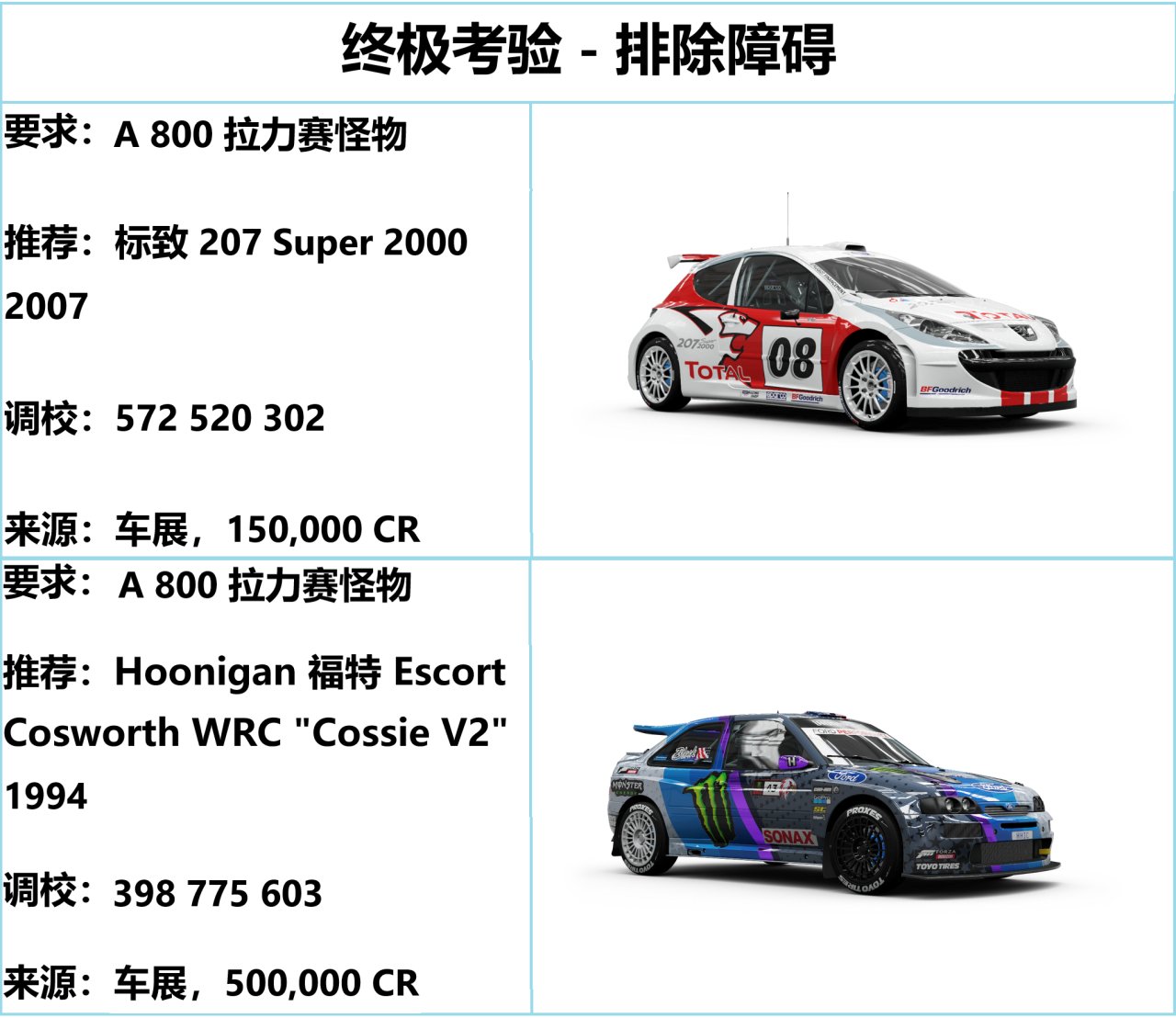 拉力賽怪物跑拉力,照例用上兩輛不同的車好了。標緻 207S 之前用得很多,車體輕夠靈活,提速也很快;Hoonigan 福特 Cossie V2 要重一些,跑得不快但好在夠沉穩。