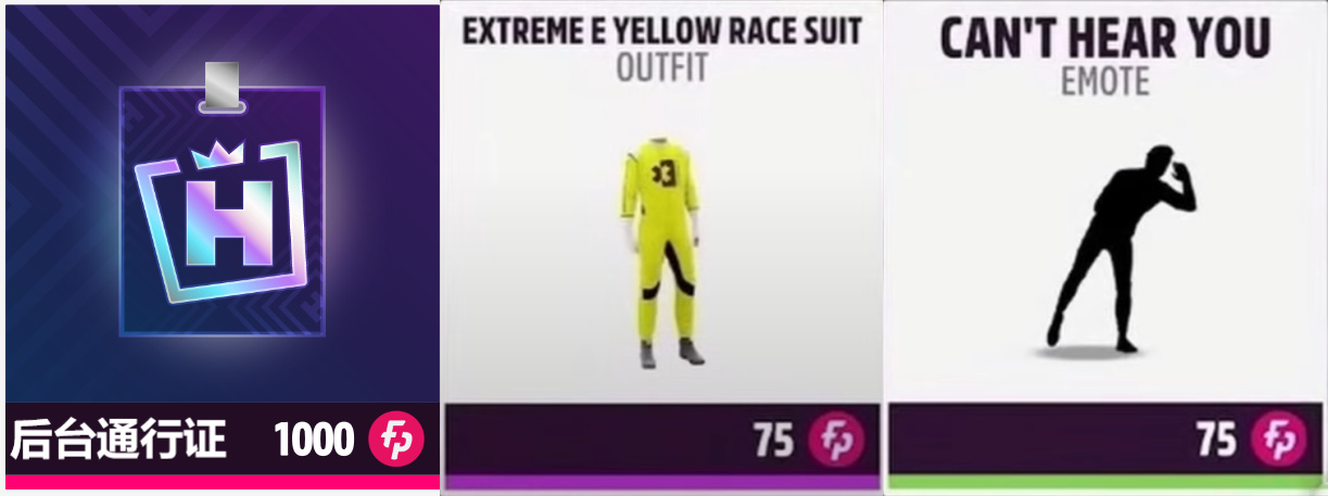 剩餘商品:後臺通行證、黃色 EXTREME E 賽車套裝、聽不見
