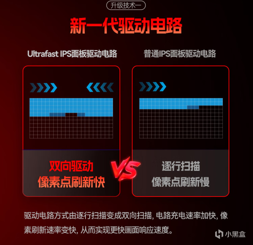 特点是采用了Ultrafast IPS,从传统的逐行单侧扫描变为了双向扫描,液晶厚度也降低了,响应时间大幅提升,对于FPS玩家这可是神器!能够比敌人先0.几秒看到人就能决定胜负。