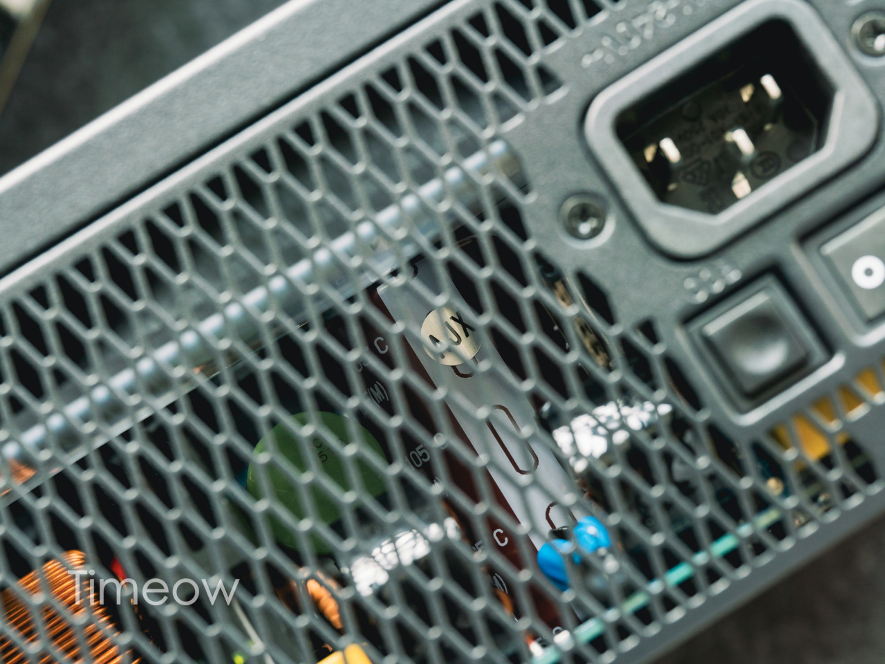 另外,包装也提到,这款电源用的是日系Rubycon的主电容,透过散热孔也能看见其芳容,这些品质优秀的部件,一来给这个电源带来很强的转换效率,二来给电源提供了10年质保的底气,电脑淘汰后,电源还能传下去,嘿嘿。