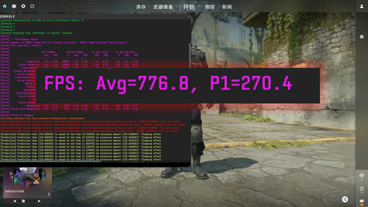 CS2能跑到776平均帧、270的low帧,丝滑!