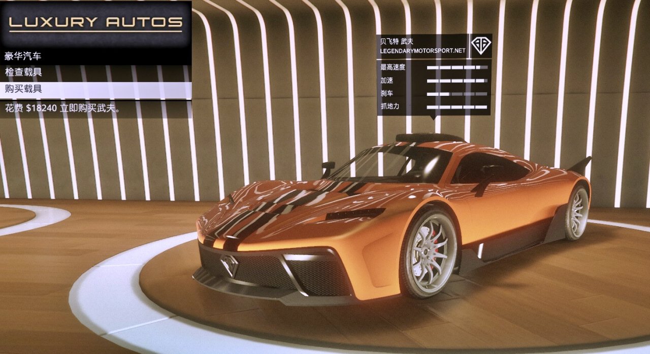 所有玩家可在“豪华汽车展厅”或“传奇车业”直接免费领取价值287万的顶级超跑:“贝菲特 武夫”