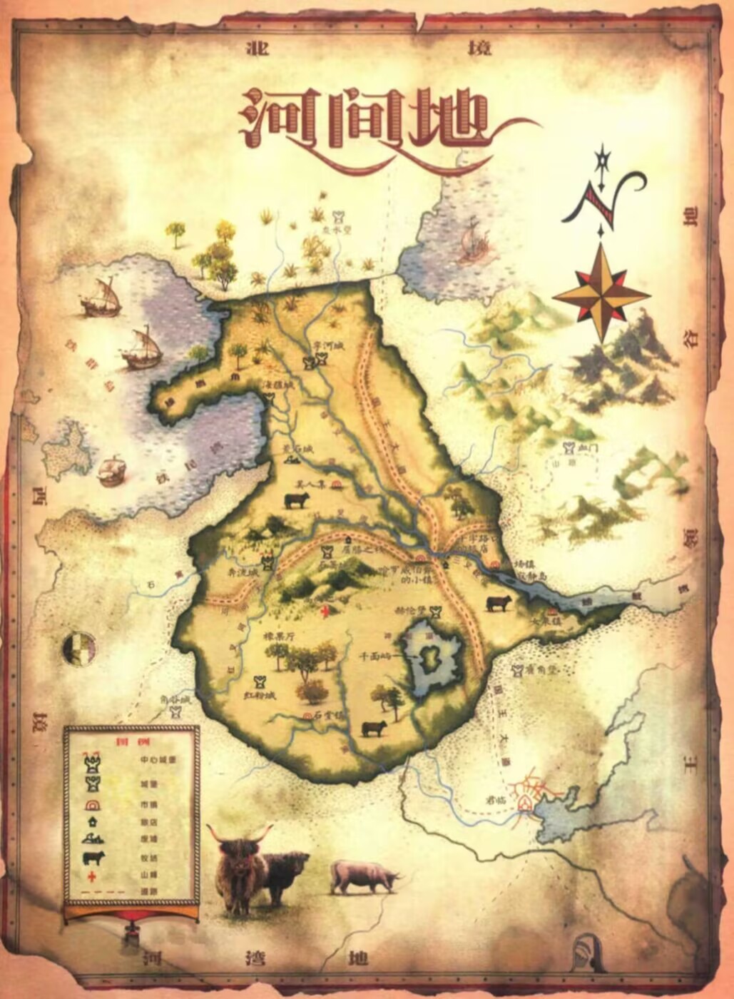 河間地北起頸澤,南至黑水河畔,東臨谷地,此乃維斯特洛躍動的心臟。放眼七國,沒有哪裏發生過如此多的戰鬥,經歷過如此多的大小王朝的興衰。箇中原因並不複雜:豐饒富裕的河間地毗鄰七國中除多恩以外的六國,又缺乏抵禦侵略的天然屏障。三叉載河的滋潤讓這片土地成爲居住、耕種與征服的理想對象,而其三條支流在和平時期有助於貿易和旅行,戰時則可用來運輸和掩護。