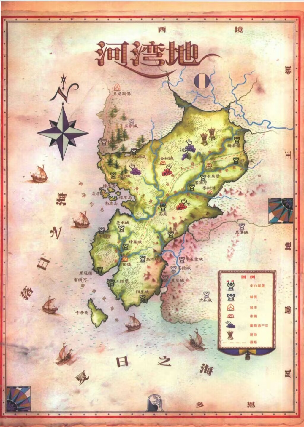 七國的糧倉,六個南方王國中最大、人口也最多的一個稱作河灣王國,但從某種意義上講這並不準確。如今高庭提利爾公爵的轄區的確涵蓋了伊耿征服前數 年間豐饒富庶的河灣王國,問題在於,河灣地從前共有四大王國 :