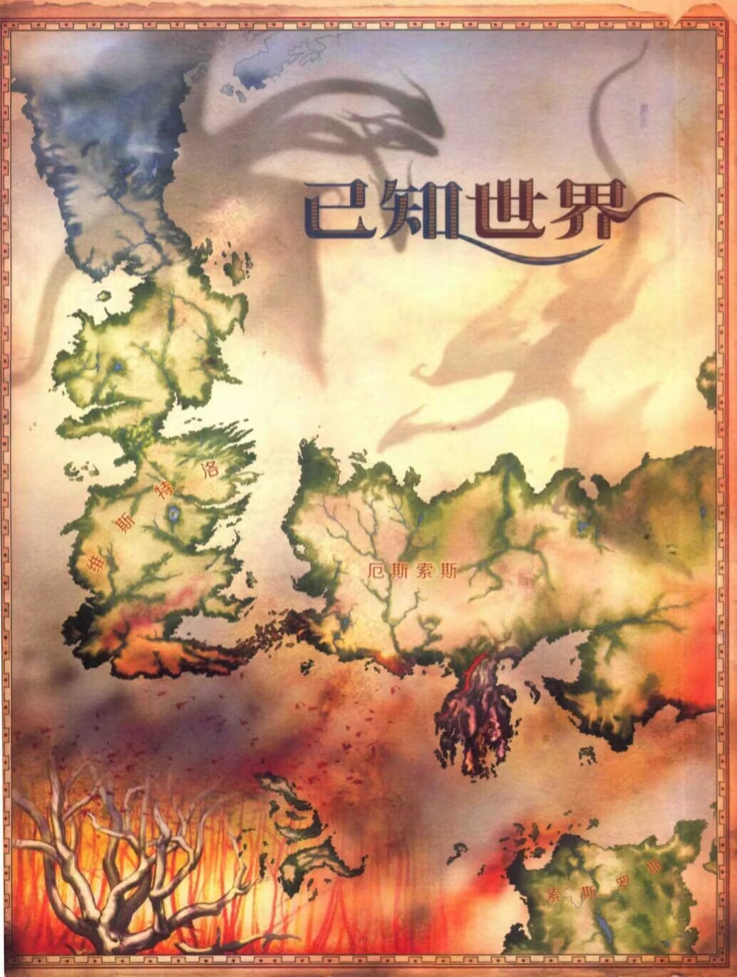 維斯特洛很大,起碼比我們所想象的要大的多。可是它究竟有多大?依據馬丁自己的說法,大概有整個南美洲那般大。維斯特洛大陸其實是一個超大號的北境,七大王國不過是其較爲溫暖的南部,更多的土地在於長城以北的永冬之地,那裏是人類的禁區,終年被冰雪和寒冷所籠罩。傳說那裏存在着寒神的使徒--異鬼,它們騎着高大的冰蜘蛛和殭屍馬,還會復活死者爲它們作戰。