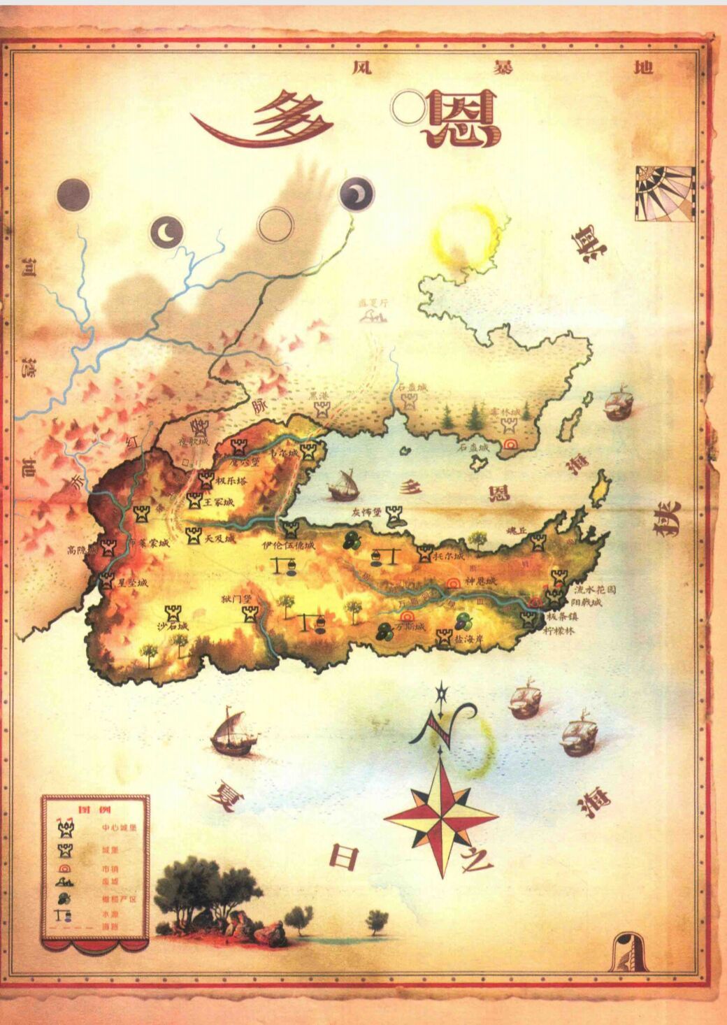 據說,只有多恩人才瞭解多恩。它位於七大王國最南端、最不適合人類居住。在河灣地、西境和君臨的人民眼中,無疑也是最奇怪的地方,怪異之處不勝枚舉。 廣袤的紅沙地與白沙地;難以翻越的高山,其中更有狡詐守衛把守的險峻隘口;令人窒息的悶熱:沙塵暴: 蠍子;辛辣食物:毒藥;泥巴城堡;海棗、無花果和血橙——構成了七國百姓對多恩領的認知。這些東西當然存在,但這個歷史可追測到黎明紀元的古老封國的內涵遠不止如此。