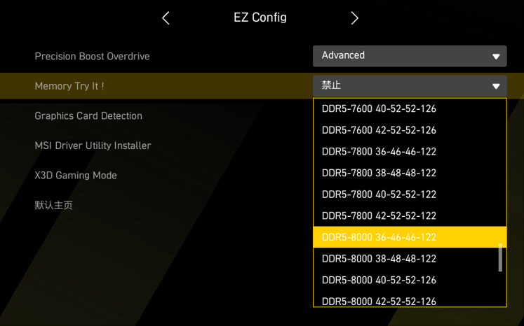 在高级设置中,微星B850MPOWER还提供了Latency Killer和High-Effciency Mode(低延迟、高带宽)给用户,在Menory Timing Preset(自动小参)还有多个档位可选,无脑选逆天香即可,低延迟高带宽可以大幅度提升内存性能,免费的功能建议各位及时开启。