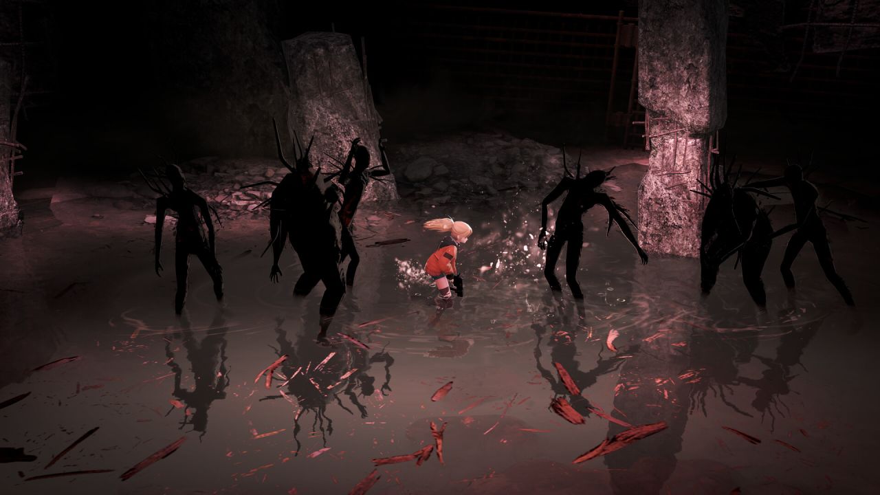事实上,游戏里还塞进了不少解谜剧情,你偶尔会乱入《寂静岭》又或者《生化危机》的片场,感受紧张刺激的生存恐怖——当然,在美少女X恐怖这点上,还是继承了前辈们的优良传统,可惜没有战败CG(滑稽)