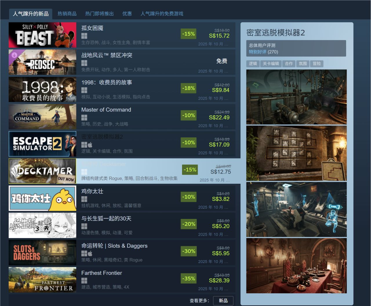 怀着激动的心情前往Steam探险,结果搜一下发现,这部美少女打僵尸《孤女困魇》已经跻身了Steam人气新品: