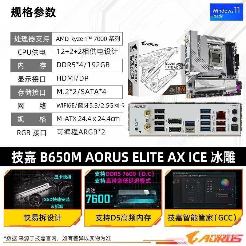 微星 B650 小雕 / 冰雕 / 电竞雕:小雕、冰雕建议入手价<1000 元,电竞雕<1100 元。优点是综合表现均衡,BIOS 可开启显卡槽 PCIe 5.0;缺陷是无显卡快拆设计,品牌竞争力一般。