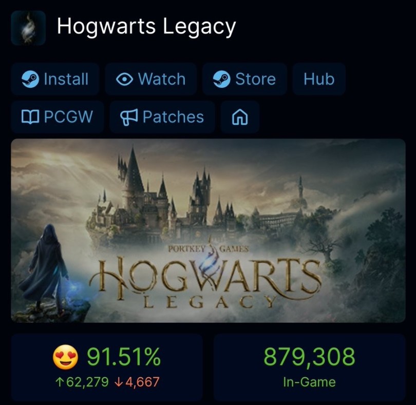 《霍格沃茨之遗》在Steam5.4万的评价中,好评率达到了93%,目前评价为“特别好评”。