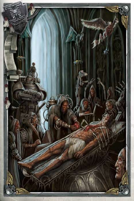 而在正式成为军团授衔成员与战斗兄弟前,新兵也必须持续接受战团药剂师的检测与评估。新植入的器官需受到严密的监控并及时纠正失衡的状态,并对任何腐败或异常发育的迹象进行处理。此种监测和处理在授衔流程完成后会减少,但永远不会迎来终止。
